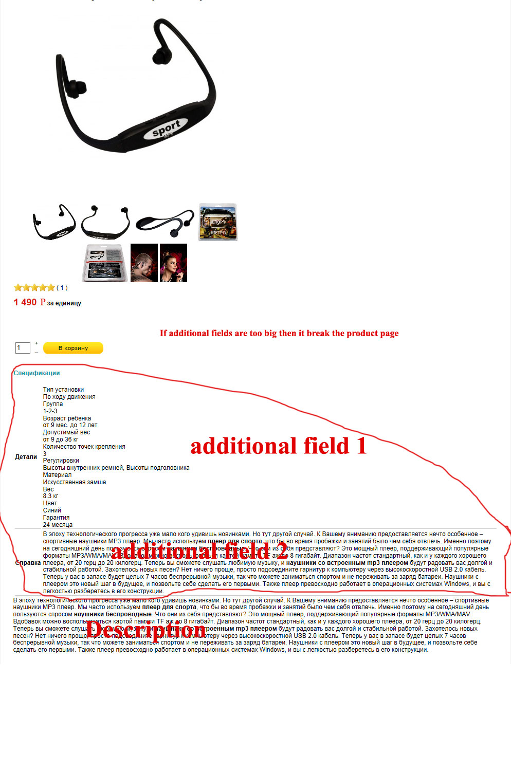 2. This two additional fiels is the text field with tips and tricks, so this fields can be very big and full of text. When this two fields are very big this can break product page. I show it on second image.