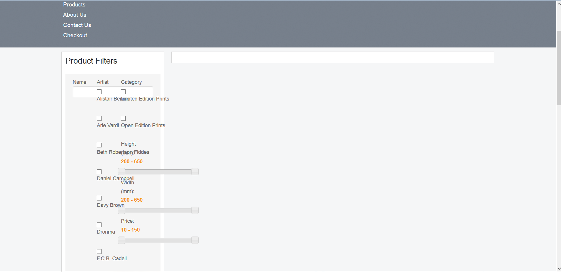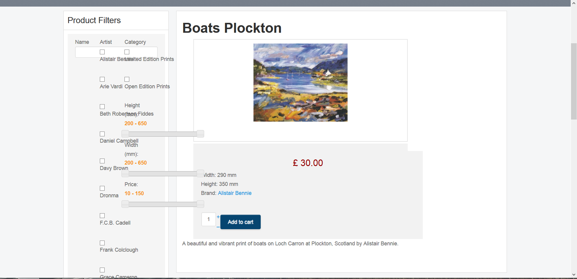 4. On the page of the individual product I would also like the description to be within the grey box, between price and width, and would like the awkward, uneven grey strip at the top of the box removed.