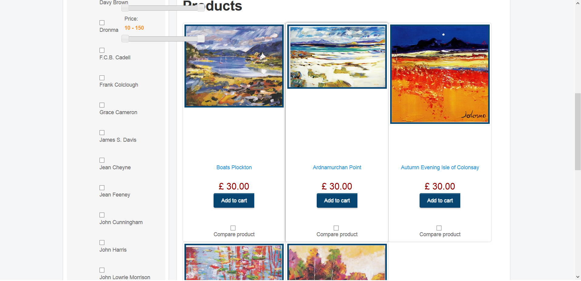 3. On the Product List Page, I'd like to have the artist and the dimensions displayed for each piece in the format: