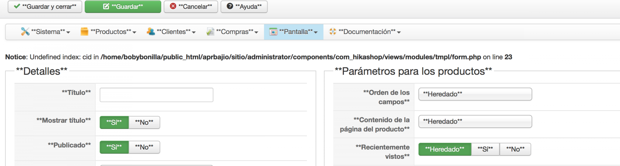 The problem is coming from the view "category | selectparentlistin" which does not send the value of the parameter "id" when you browse a category.