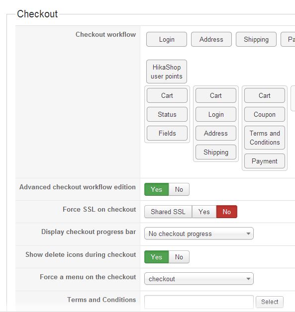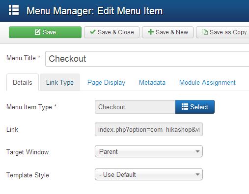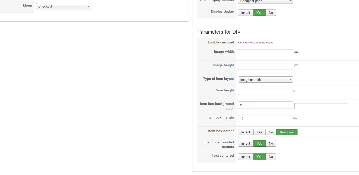 4. Hikashop checkout configuration forcing menu "Checkout" - menu is forced correctly but module not displayed (space is created for it but it is blank)