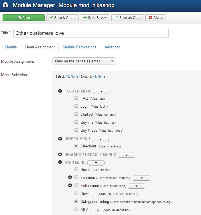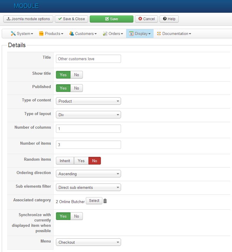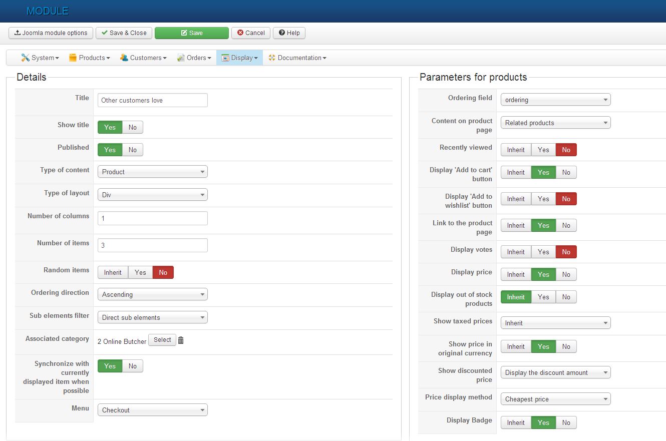 3. Hikashop options for Related Products module