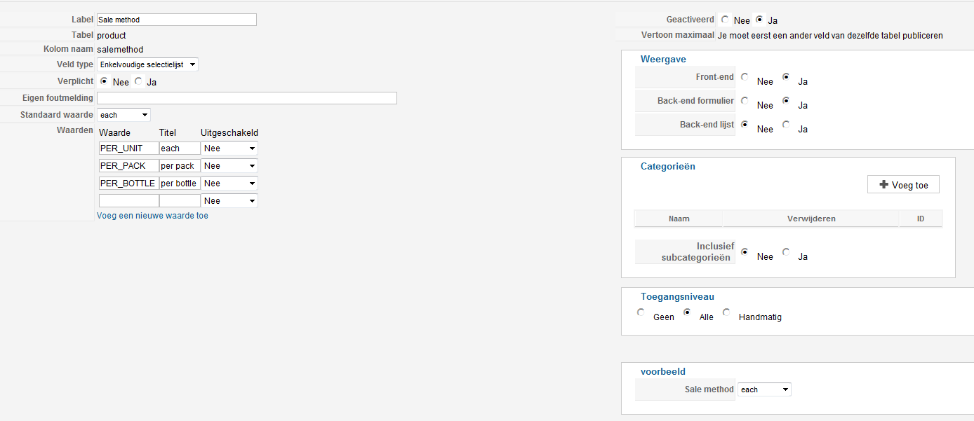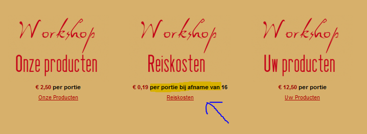 I want to do, that I can change that for only a few products, so that the other products I have from food just "Per portie" is and that the workshop "Per person" and the Reis kosten "Per kilometer".