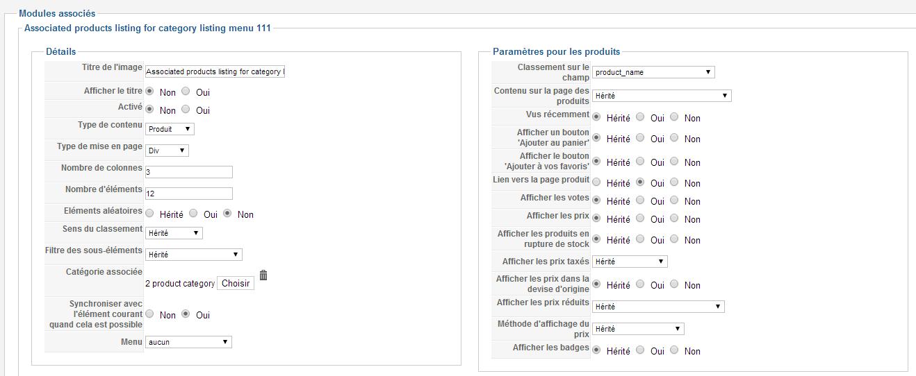 1. show me some screenshots of how did you configured your product listing content module/menu ("Hikashop->Display->Content menus/modules") ?