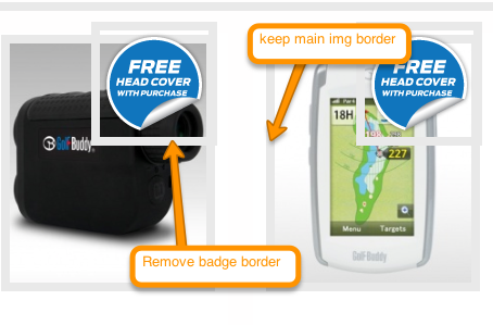 I want to keep the shadow/border on the main image - No border/shadow on the badges.