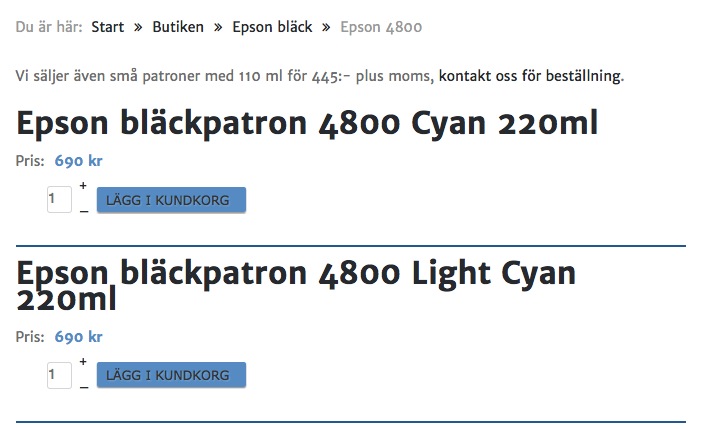 When clicking on that item to get to the product view it looks like this: