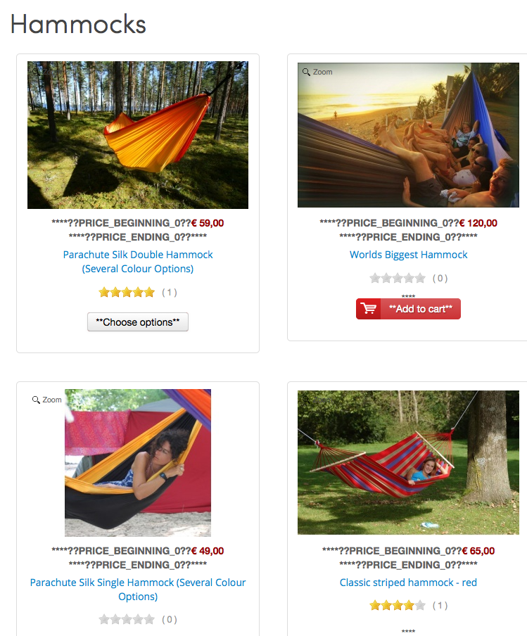 In the back end I can't see anything, see the screen grab. In the front end I see something odd going on with the price, that started to display like: ****??PRICE_BEGINNING_0??€ 59,00 ****??PRICE_ENDING_0??****