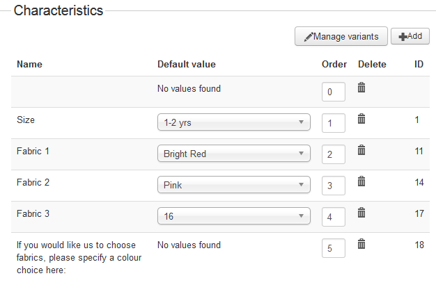 1. The customer will be able to choose from approx 30 fabrics for the inside and 30 fabrics from the outside, plus a size. The fabric choices have no impact on the price. However, sizes will need to be different prices. Is it possible to get the price to change just based on the size, rather than having to go through every single possible variant of fabric choices and size (the number of variants will be far too many to manage)
