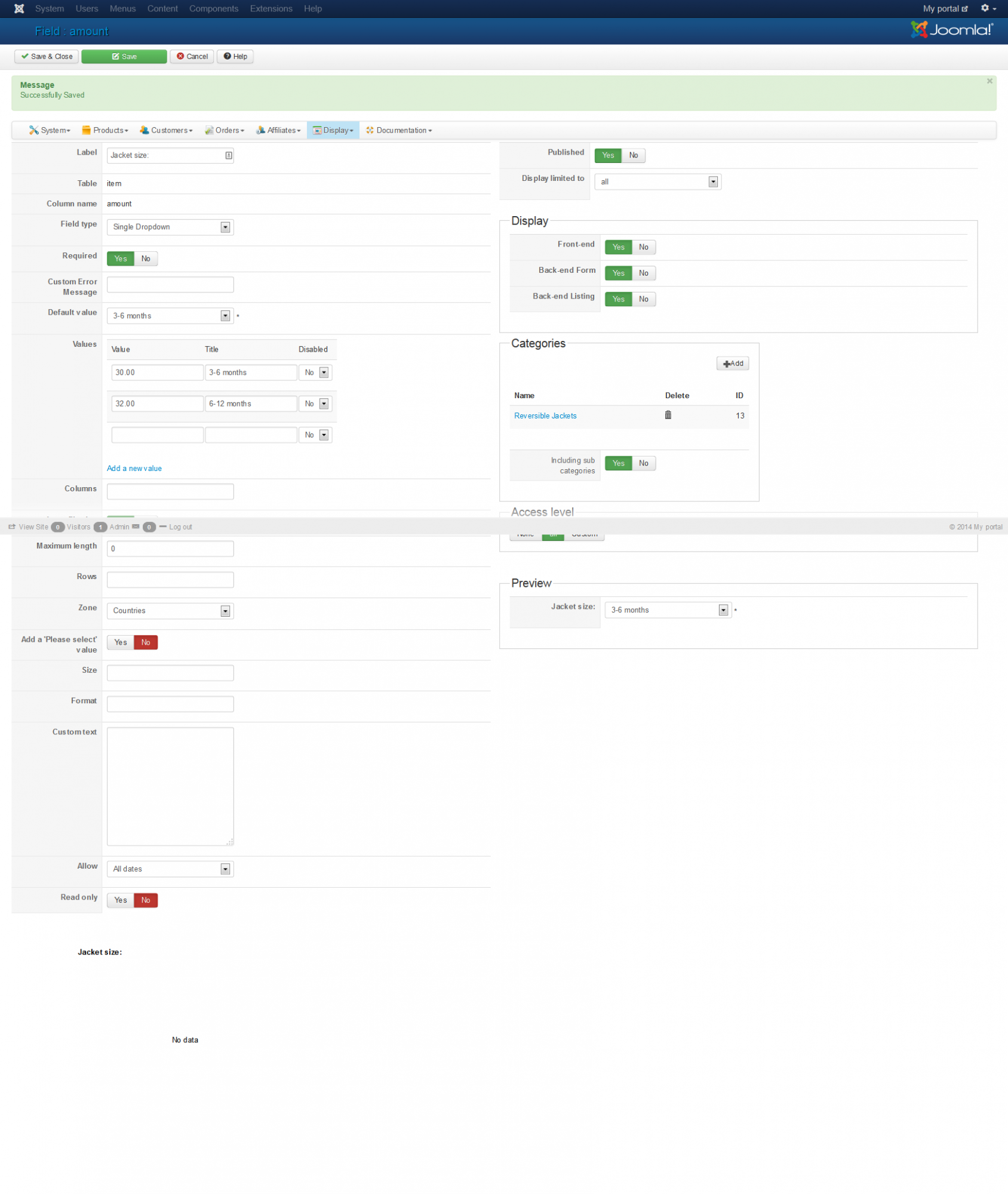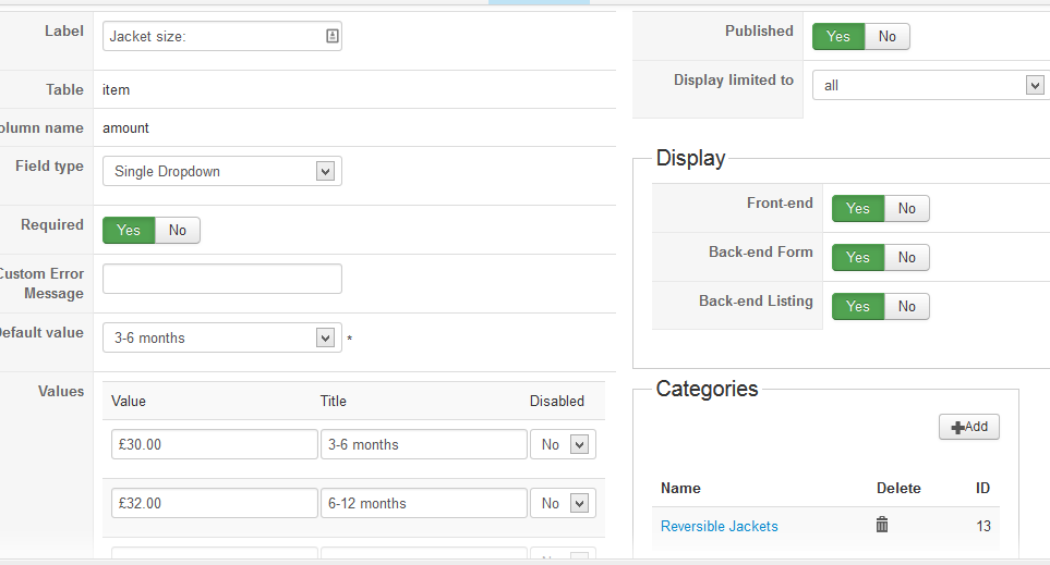So I left it and then created a new custom item field, and assigned that to a category. That now shows up on the front end fine. But if you go to my test item at