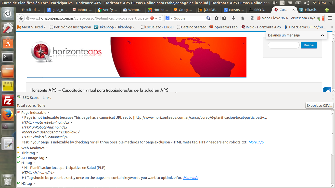 I'm attahcing a prtscreen of the SEO tool so you can check the whole message