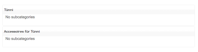 Basically I have one menu entry per category. When I click on the product in the category, , the product page is shown. And the at the every poduct page, all the non empty categories are shown with these "No subcategories"