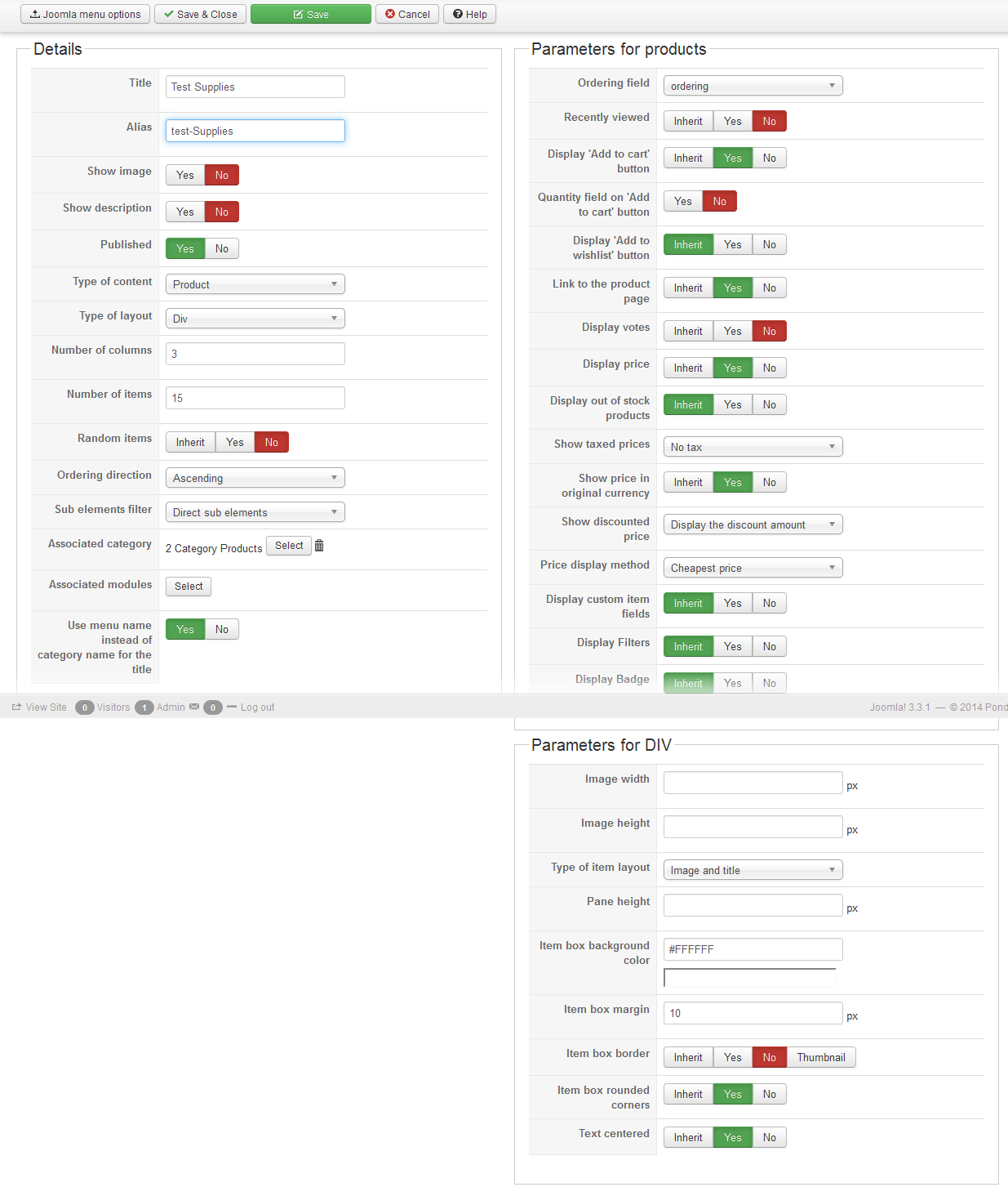 And as you can see, you have one set of options for the categories listing menu, and one set of options for the associated module. That way, you can configure differently the categories listing and the products listing.