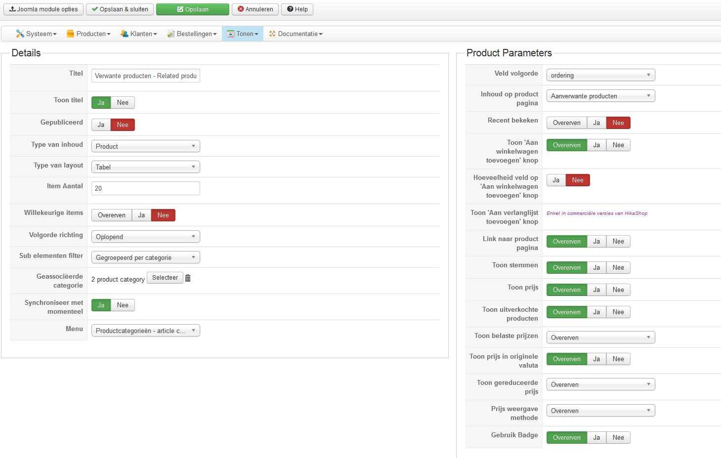 For some reason, I can't get to display the title of the related products module: it only displays the category title, although I have the title enabled. (See attachments: only "CD"s" is displayed, not "Verwante producten - Related products").