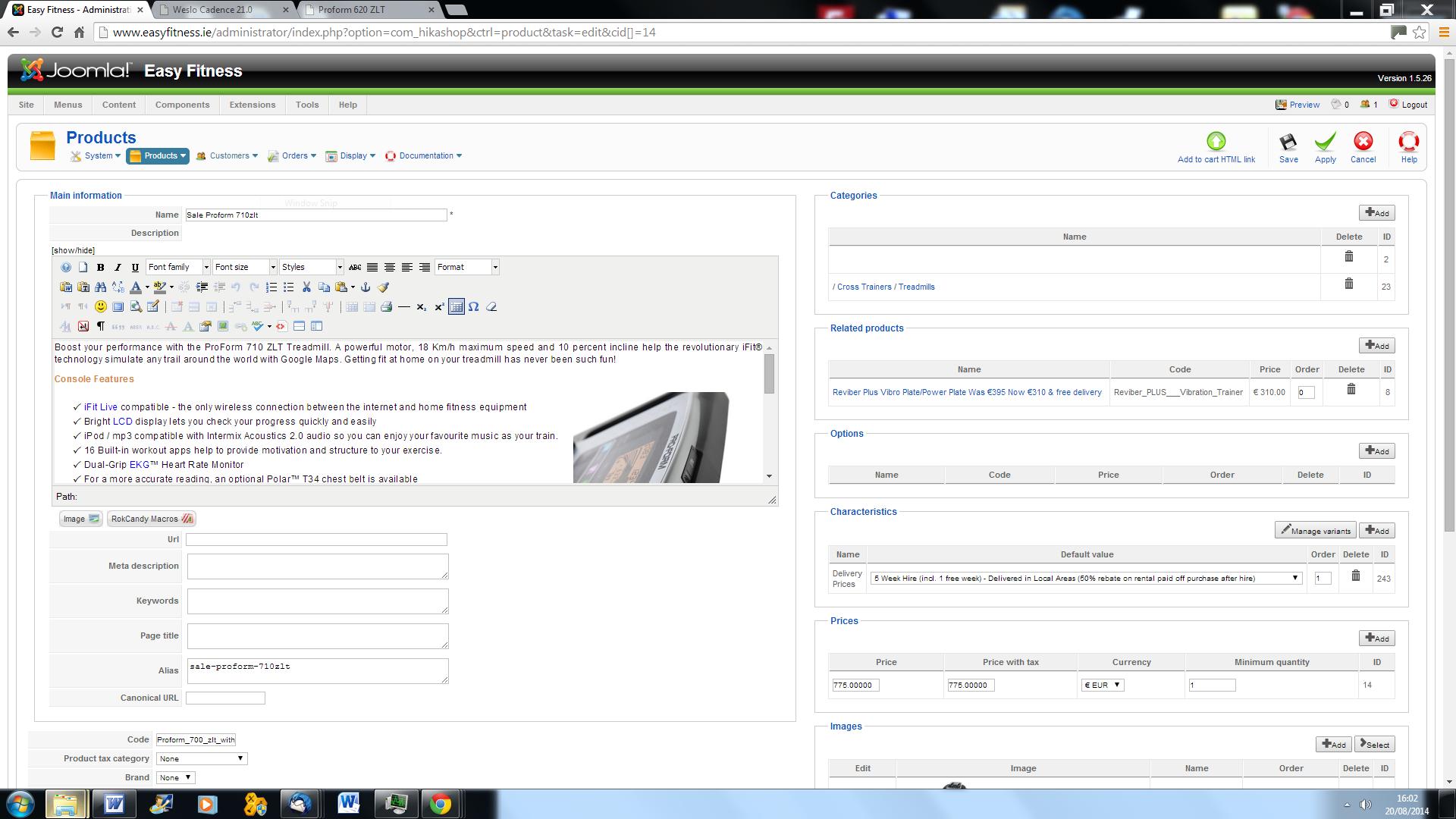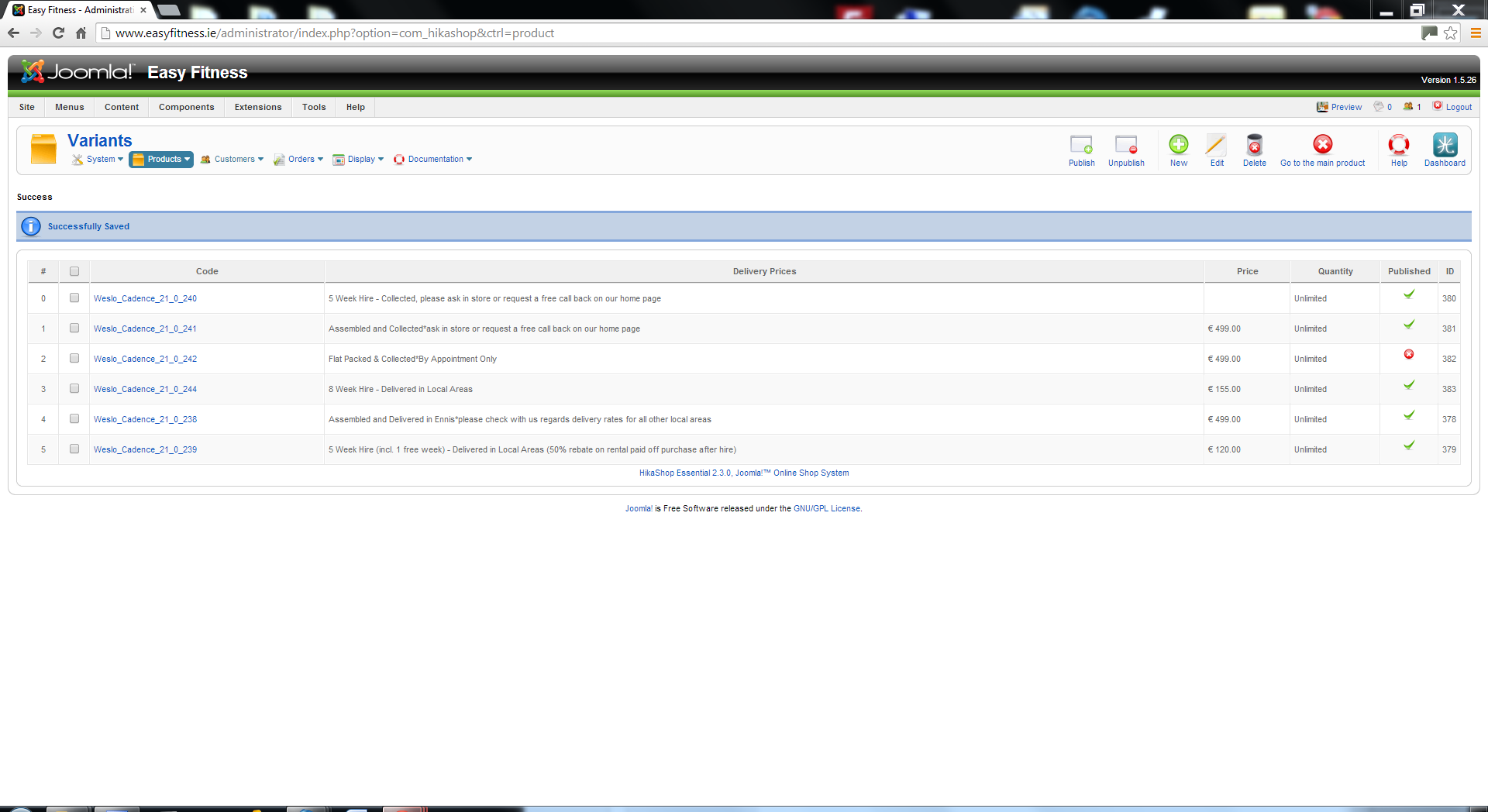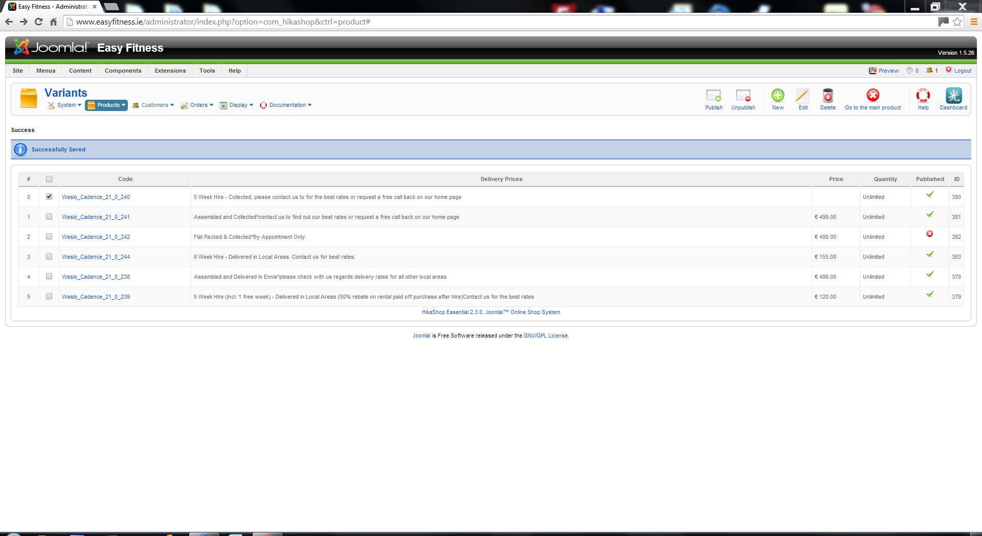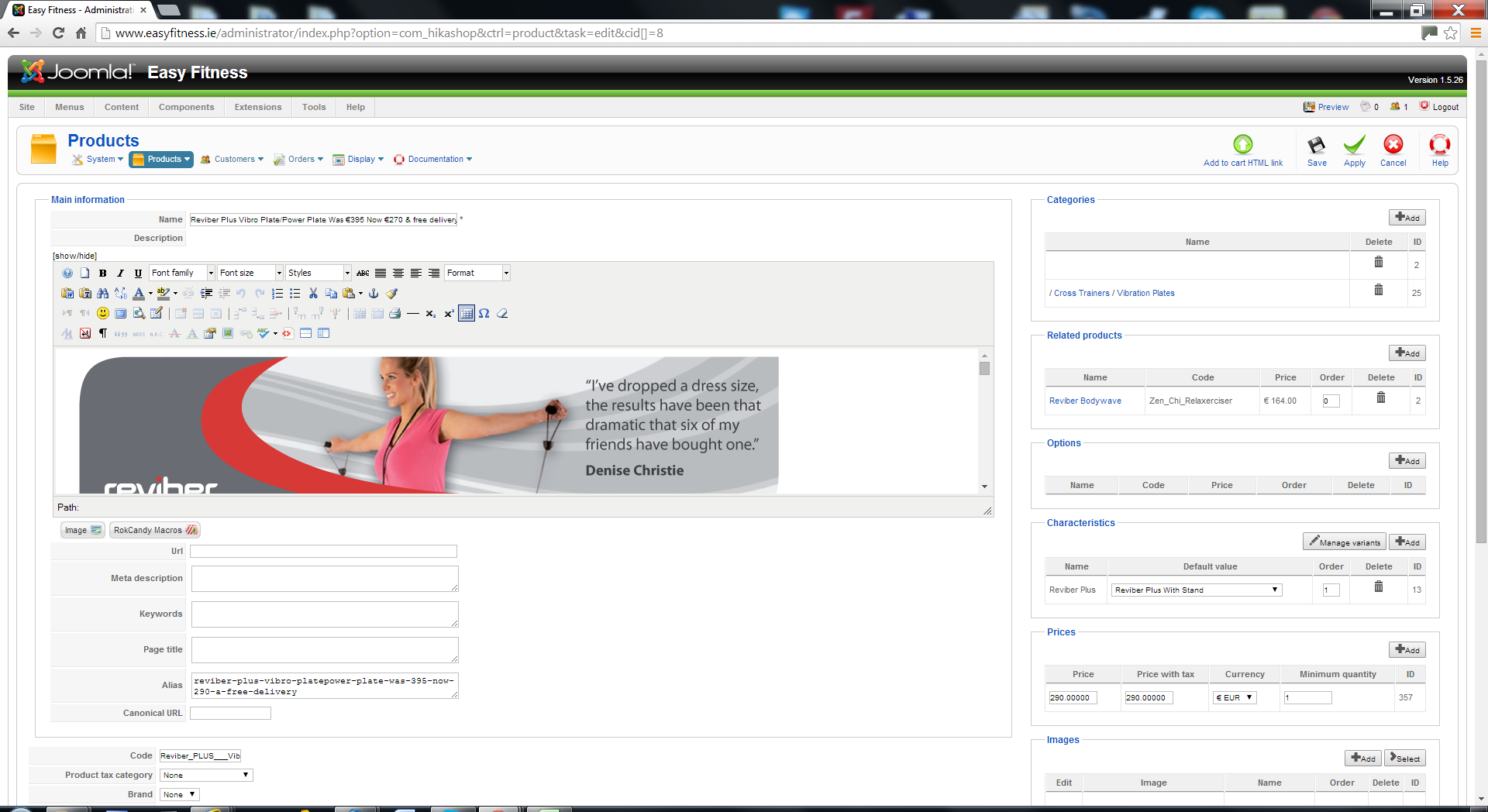 My I.t guy upgraded my hika shop. However if I edit a price of a product and apply when you preview the page no product info. is visible in the front end of the website but the product details are still visible in the back end. My website is www.easyfitness.ie