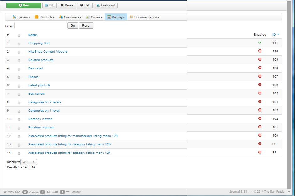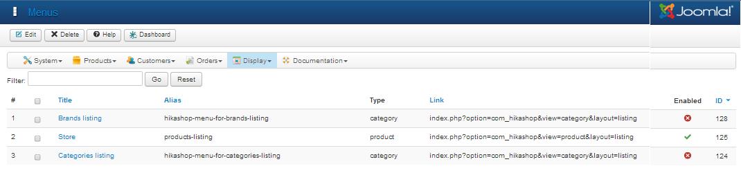 If you didn't use the wizard, the preconfigured listings can still be activated via the Joomla menu manager by just moving them from the hikashop default menus to your main menu. Again, it doesn't require to change anything and it will work.