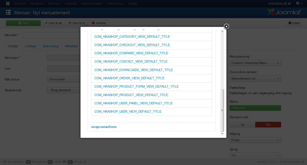 If you re-install HikaShop (using the same package), it will use the language file to re-generate the Joomla system language file used for the menus item names.