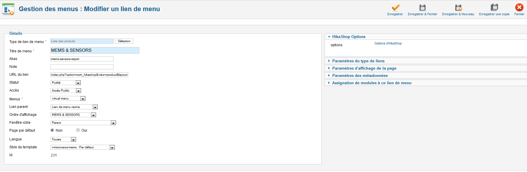 D'un côté nous avons des catégories HikaShop et de l'autre un menu Joomla ; ce n'est pas du tout la même chose.