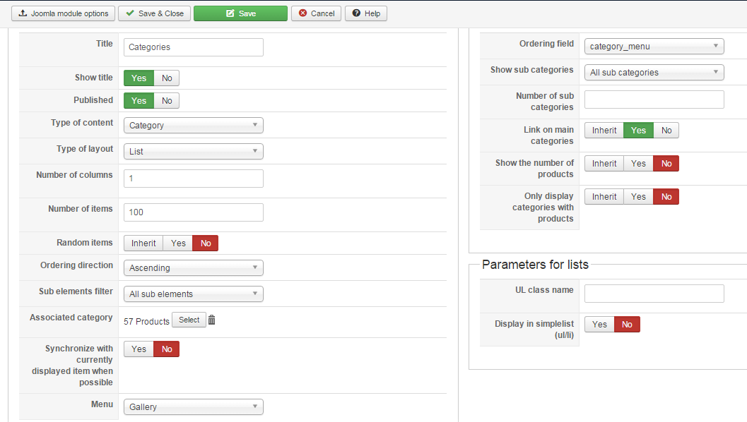 Under Gallery menu, I have created the listing products for each category and they are working fine.