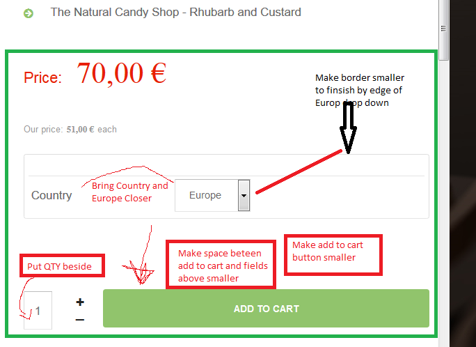 c) To make the space between the above drop down Europe and Add to cart button smaller