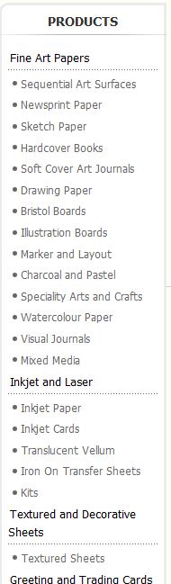 I also have the Virtuemart module mod_product_categories in the left column, this has very few parameters to configure and a bit of css tweaking but again just links to the product pages.