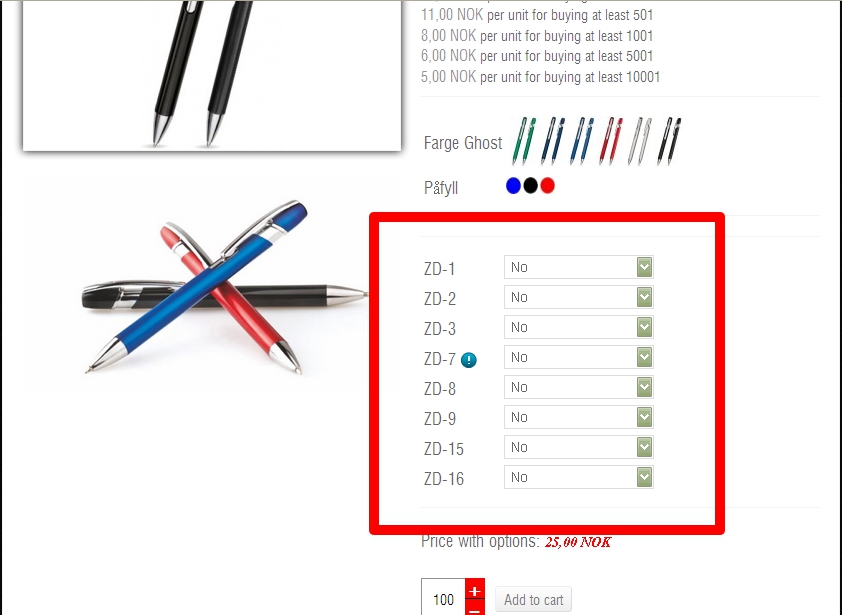 I need help with setting options for products. What I mean is that at the moment I made a few possible to order case for pens, but it does not look good. ie not as much as I'd like.
