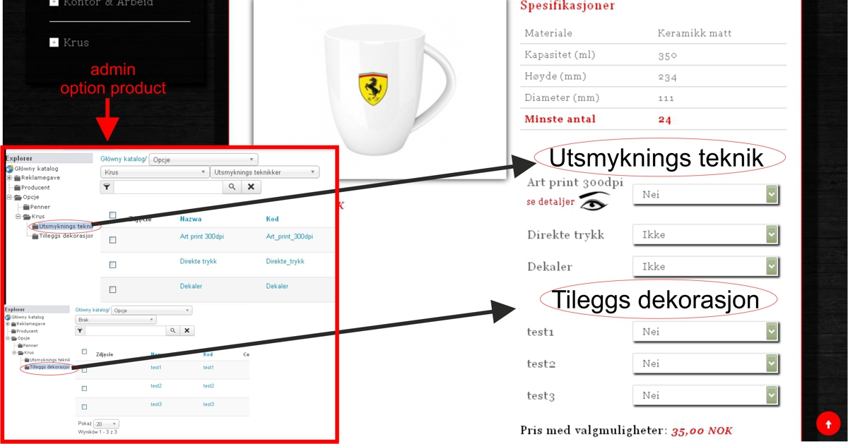 "decoration techniques" that would be a title, and under it products in this category, and underneath such "additional features" and there are options that category of "additional features"