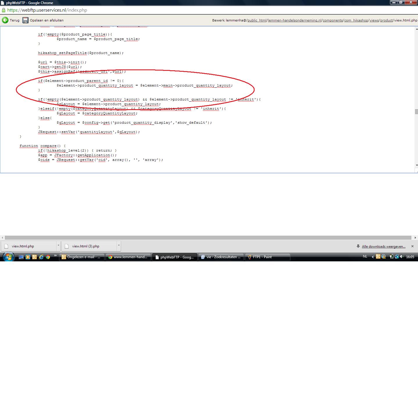 to the file "components/com_hikashop/views/product/view.html.php" via FTP, just like you wrote.
