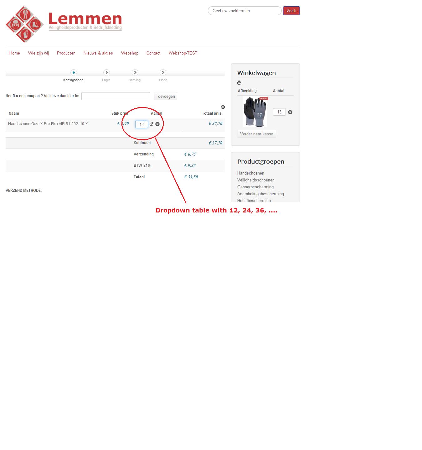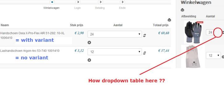 How to have a dropdown table on the small cart on the right ? Now it is still possible to change manual to 25 by overwritting the 24.