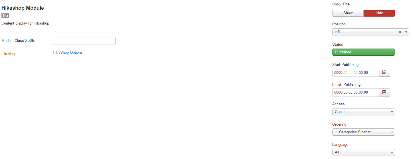 This is my first struggle! I have a series of modules that I'm messing around with and for some reason despite unpublishing them, they're still on the page. I have the set to unpublished on both under the Menu display item's listing on the Hikashop component and under Modules on Joomla!. The modules are: "Categories Sidebar" and "Random Products", which should be unpublished, but are still showing up on the page (