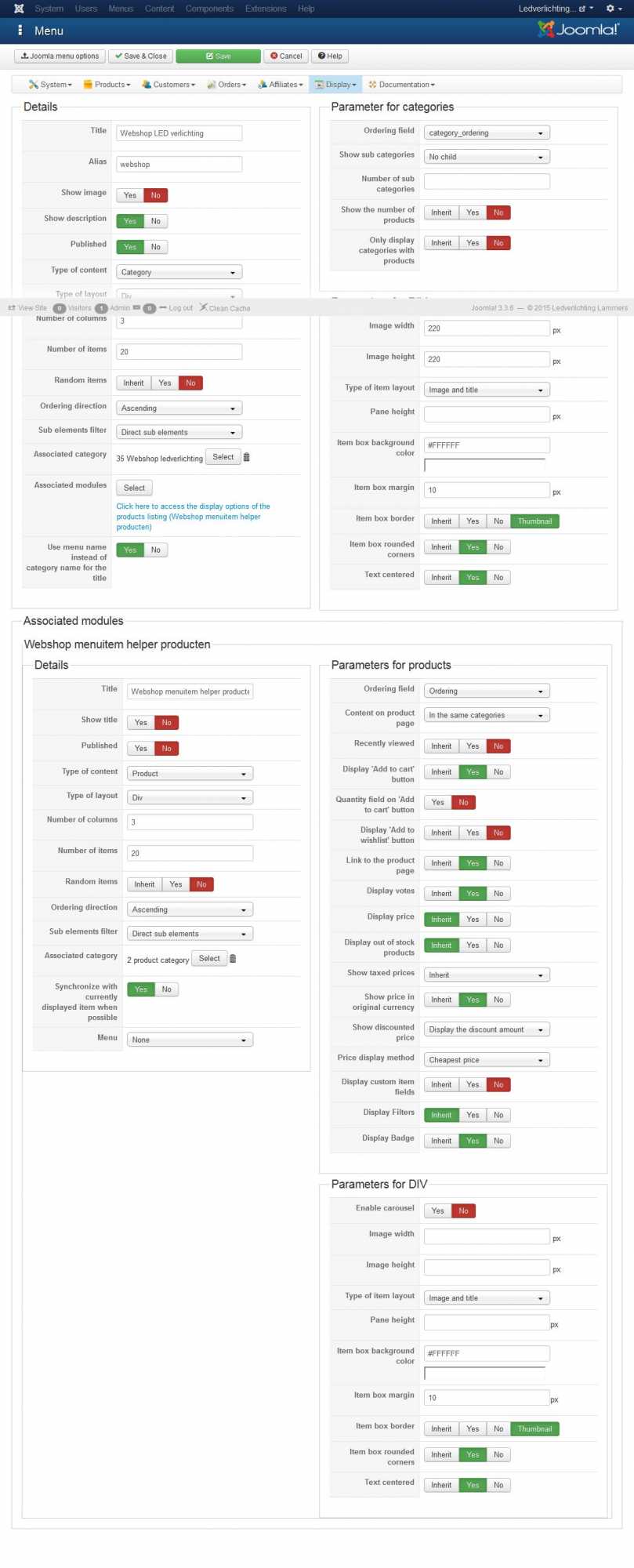 I have Two categories with child categories with products in the product-category. There are two menu-items for each category and the have both a module not published to show the product-layout. On one of the menu items/category I want to not show the prices. I thought is was as simple as disabling the price switch of the product parameters from particular menu module. The switch has no effect. The only thin that has effect is setting the default parameters, but that disables all the prices... Switching the prices on for the other category also doesn't work.