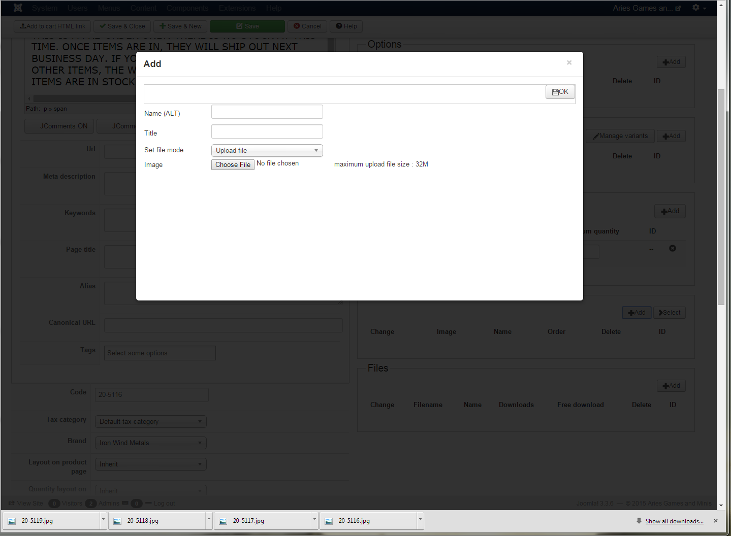 #1 - Add Screen...this is the box I get after hitting Add in the Images section of adding a product. This is normal.
