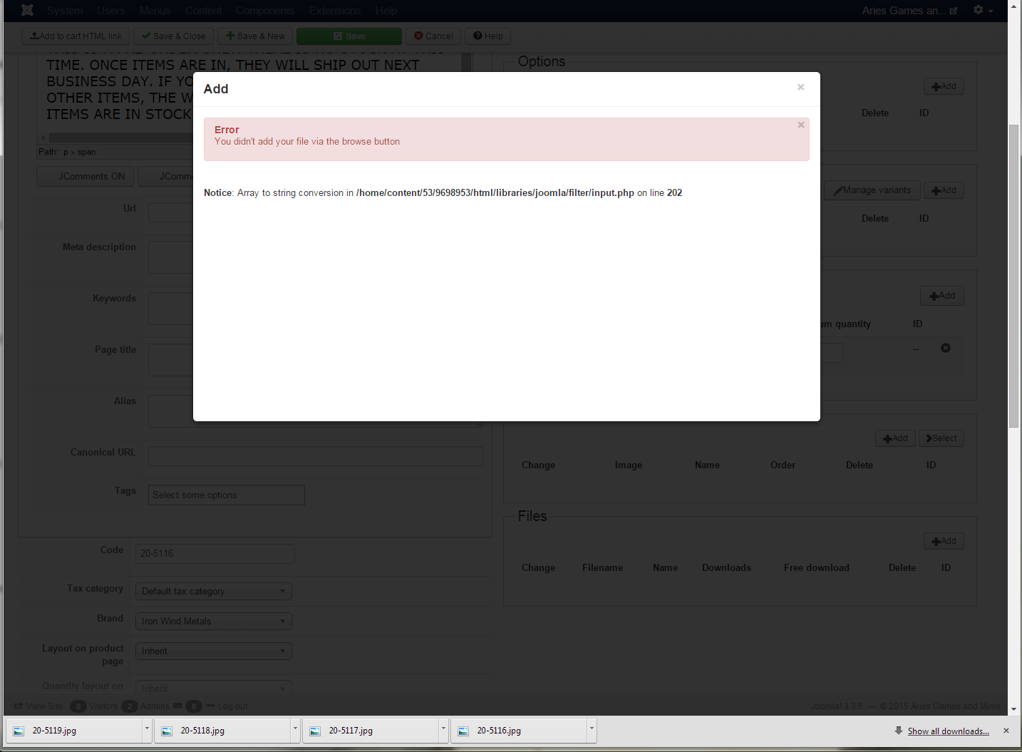 Recently, I upgraded to the newest version 2.3.5 from 2.3.3. Today I tried to upload some new items to my store, but I am getting an error when trying to upload their images. Please see the photos attached...
