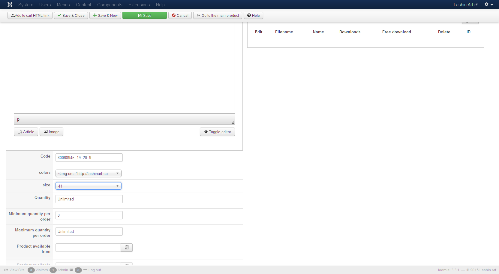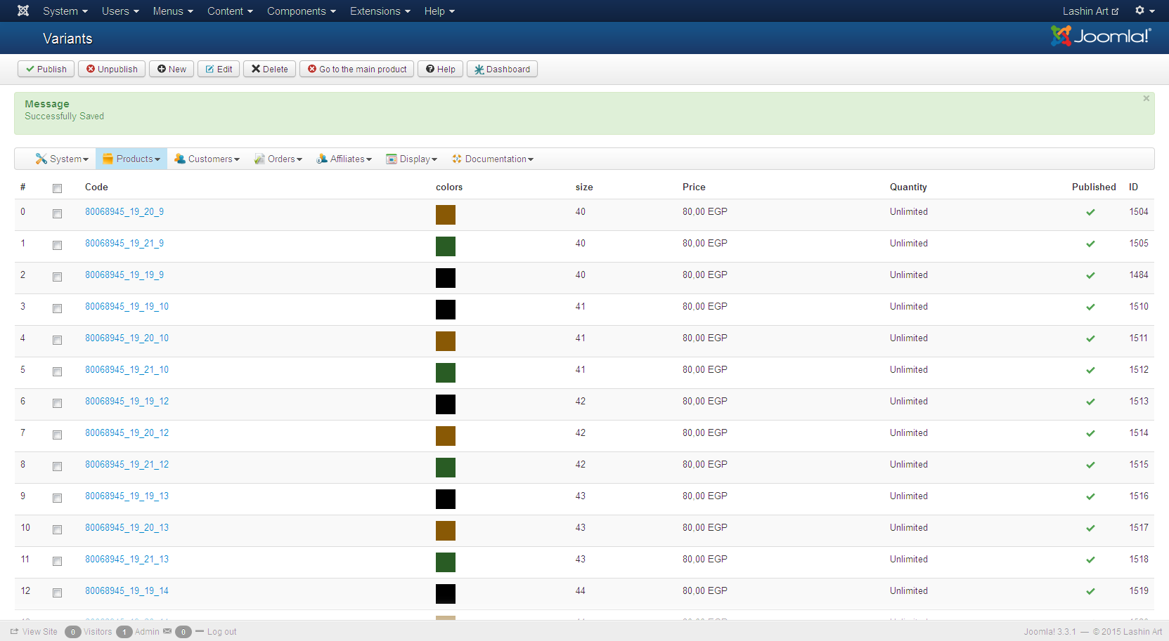 What do you see when you click on the "manage variants" button of the product edition page ?