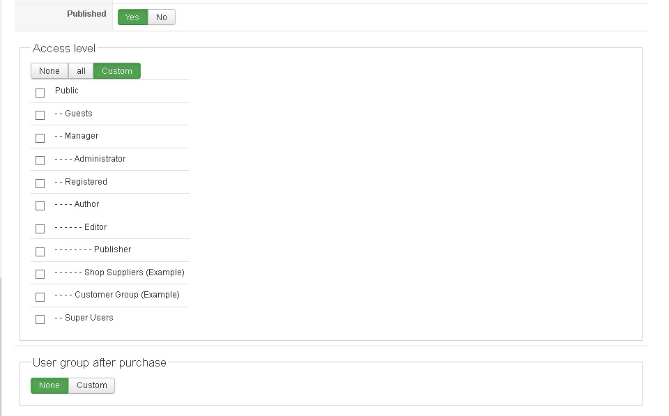 The product_access level contains the ids of the user groups separated by a comma with a comma appended and another one prepended. So if you just enter the name of a user group in the field, the access level system will consider that as invalid and will discard it.