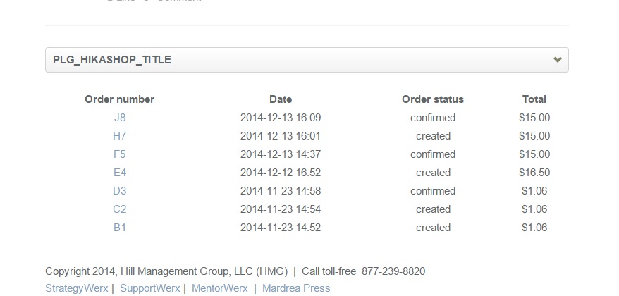 My question is this. When it displays the customer orders on their JomSocial profile page, the heading for the orders group is PLG_HIKASHOP_TITLE. I have dug through all the folders I can think of, and can't figure out which folder this is in so I can change it to a meaningful column header. Where should I look?