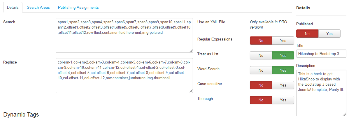 Inside the component we made a new 'Rule' that simply replaces and overwrites the old Bootstrap 2 classes to the new Bootstrap 3 classes.