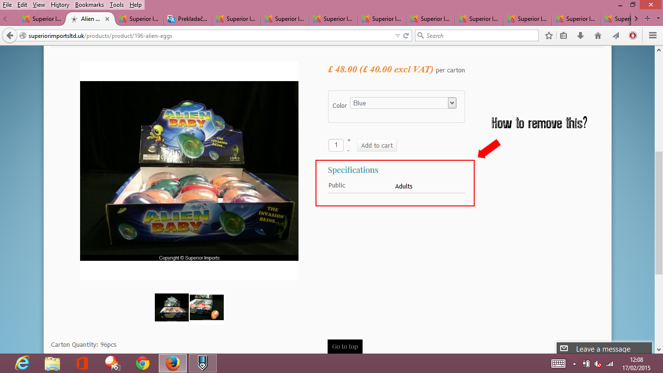The block "Specifications" is generated if you are using Custom Fields, and the HTML on the linked product page is showing that you are having at least one custom field of the type "product" published and assigned to this product.