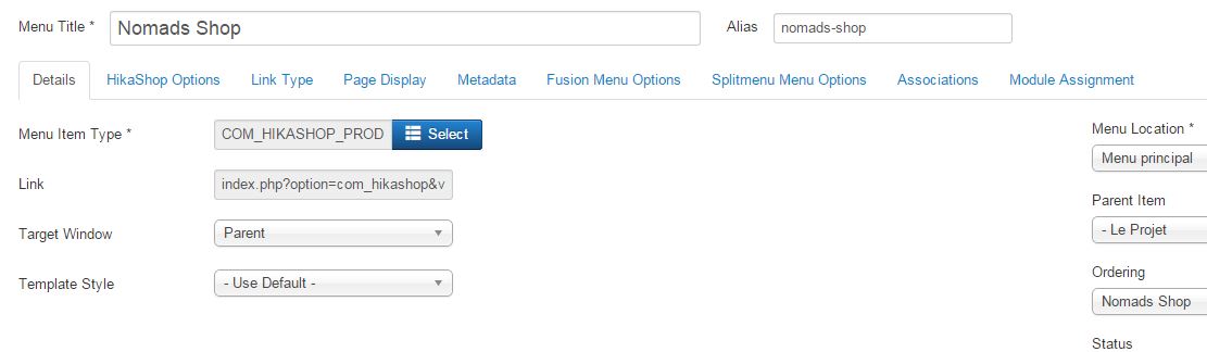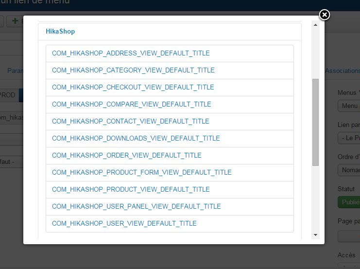 The the list of menu types of HikaShop are not really readable as you can see on printscreen