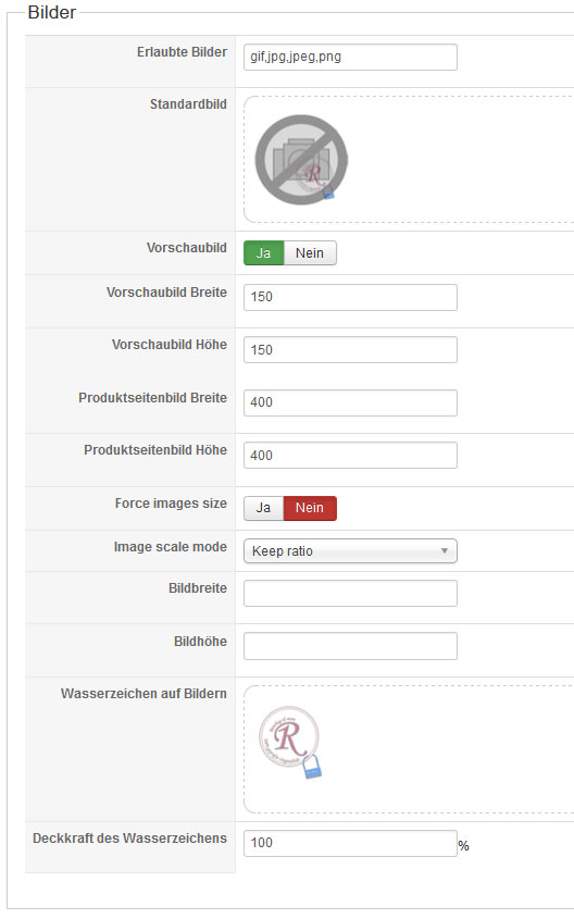 Please provide a screenshot of your "image" configuration in the HikaShop backend.