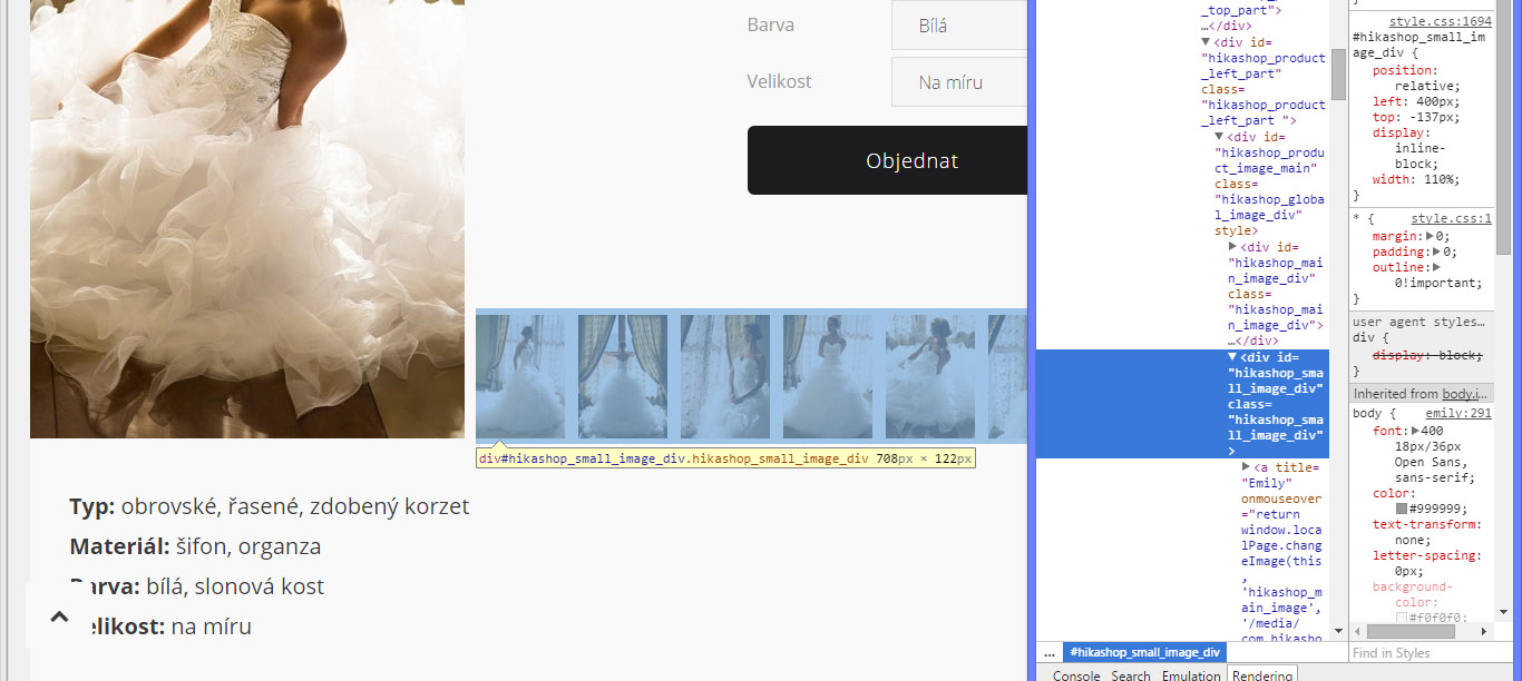 Thumbnails are moved by css to another but on changng characteristics the thumbnails are moved to default place.