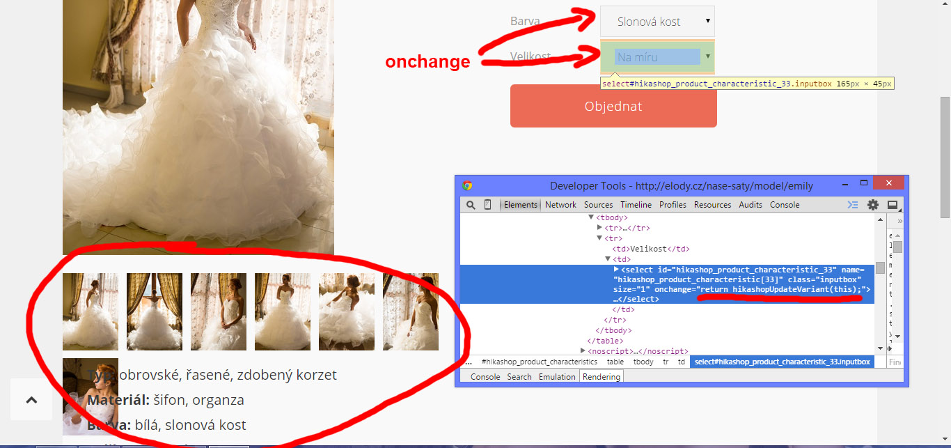 When I removed onchange event (return hikashopUpdateVariant(this);) it solved this issue but selected characteristics did not appeared.