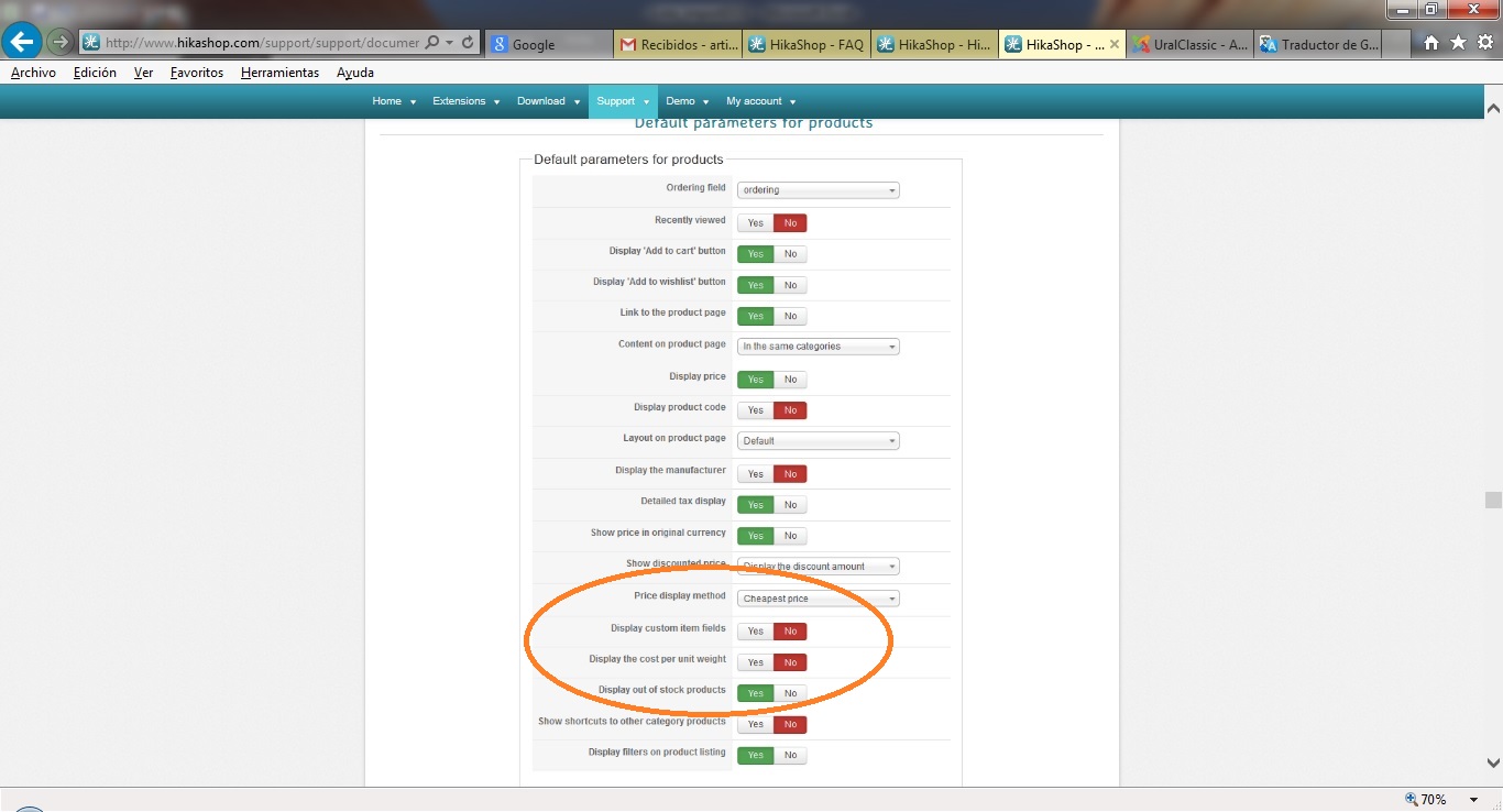 I am trying to find how to put custom fields in the products but can not find a way to display them. I followed the instructions in the help but observe differences between the aid of HikaShop and the version I have installed. I can not find the option to display custom fields as you can see in the two screenshots that I enclose here, Hika and Mine, where you can see the difference.