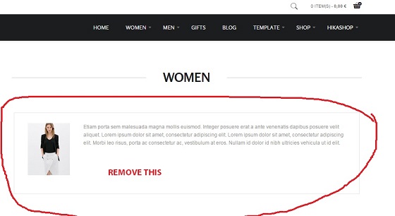 I want to remove the block thats above the catgorie page. it makes my page to long and I dont need it at all. please tell me where to remove this item