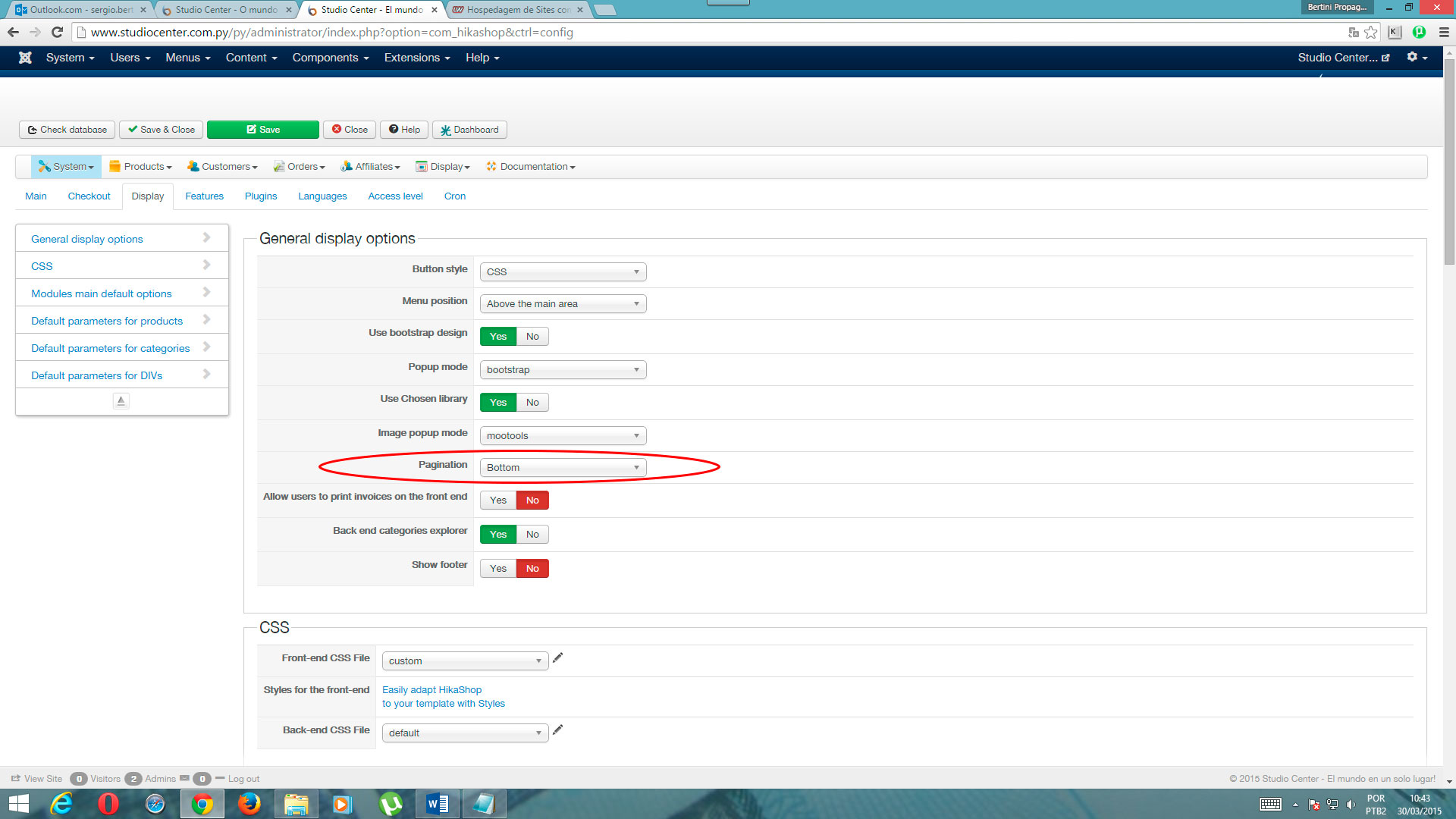 I had already set up to display the "Pagination" in the page footer, but it is not displayed!