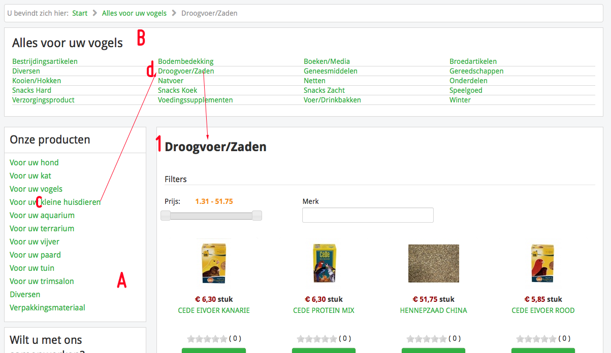 “voor kleine huisdieren” [c] will not show the titles of the subcategories on position [1].