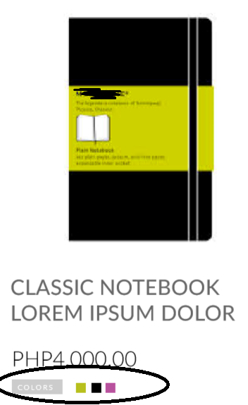 Alternatively, you can display item custom fields (business edition) on your product listing, so that your customer will be able to select what they want directly on the product listing. And you could achieve quite easily a color selector like this on the listing thanks to such custom item fields.