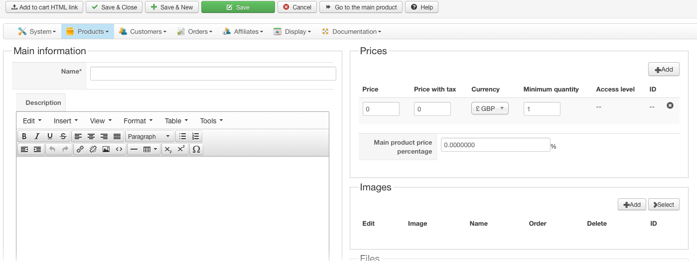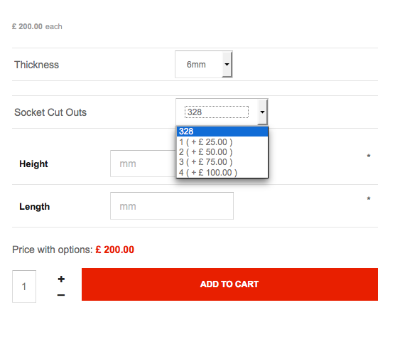 Product option variant price display for £0 price