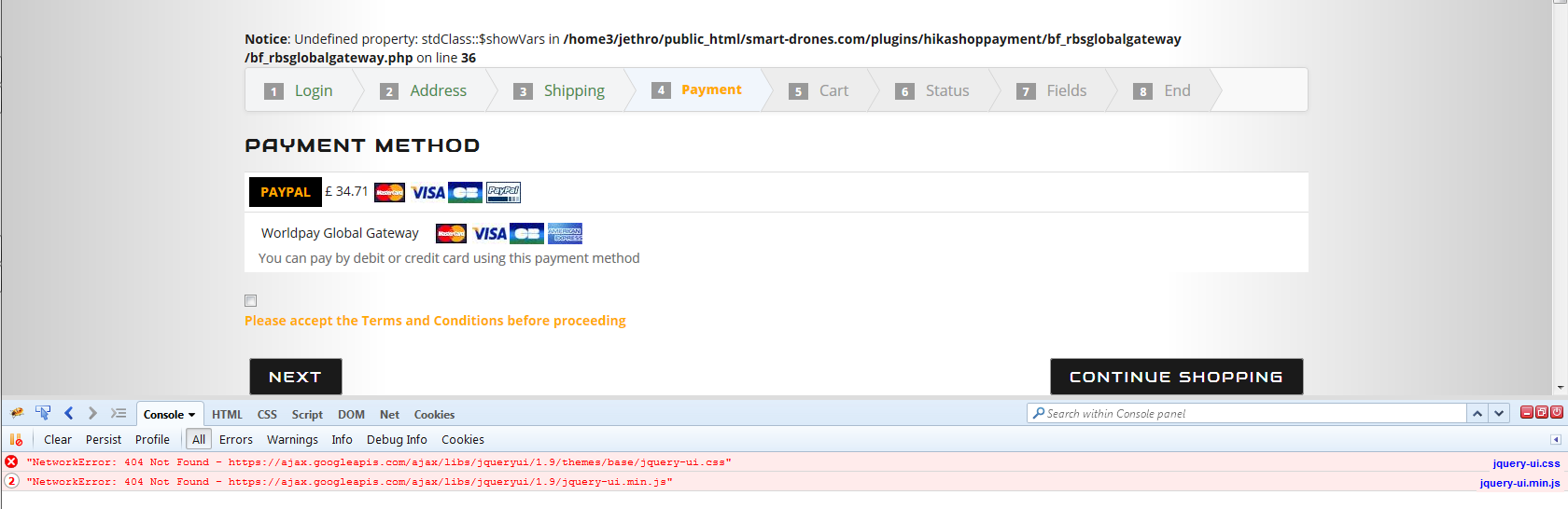 Hi everyone, I am getting some errors with the checkout pages on my website, I am not sure if it is to do with the template which is Bootstrap 3 based (Purity III from Joomlart)...