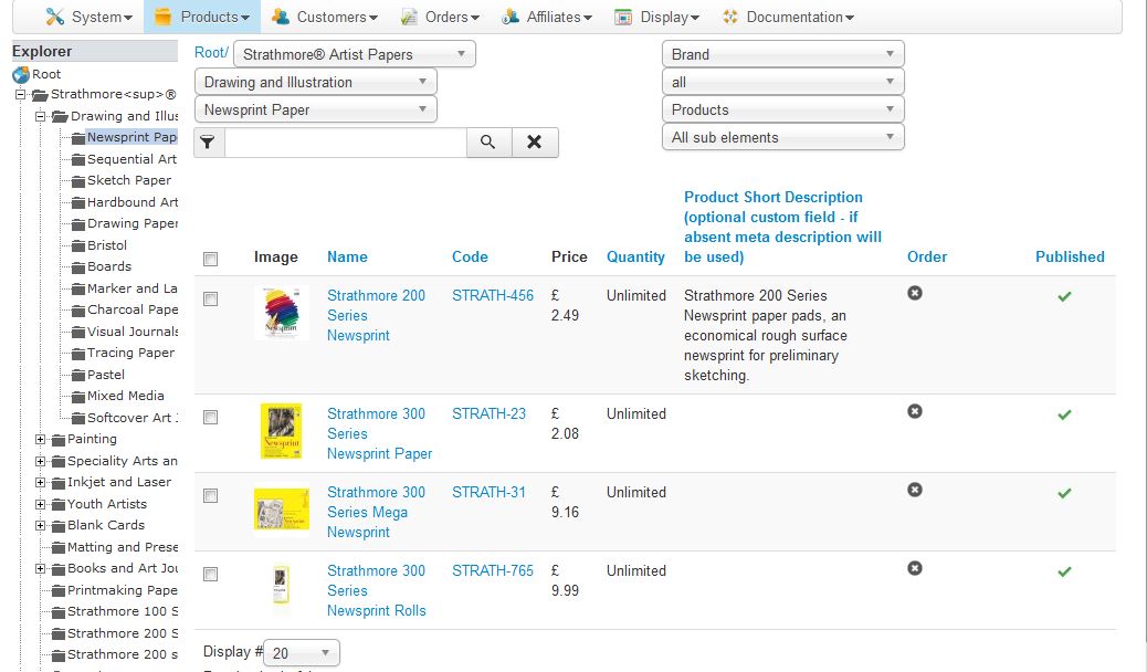 I'm surprised it actually works fine at all without the main product rows.