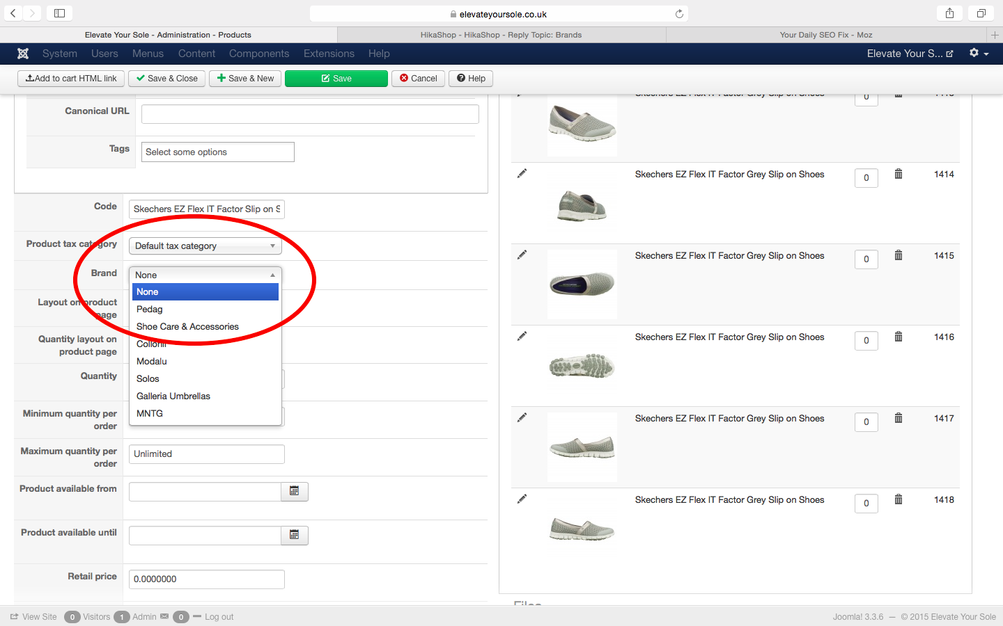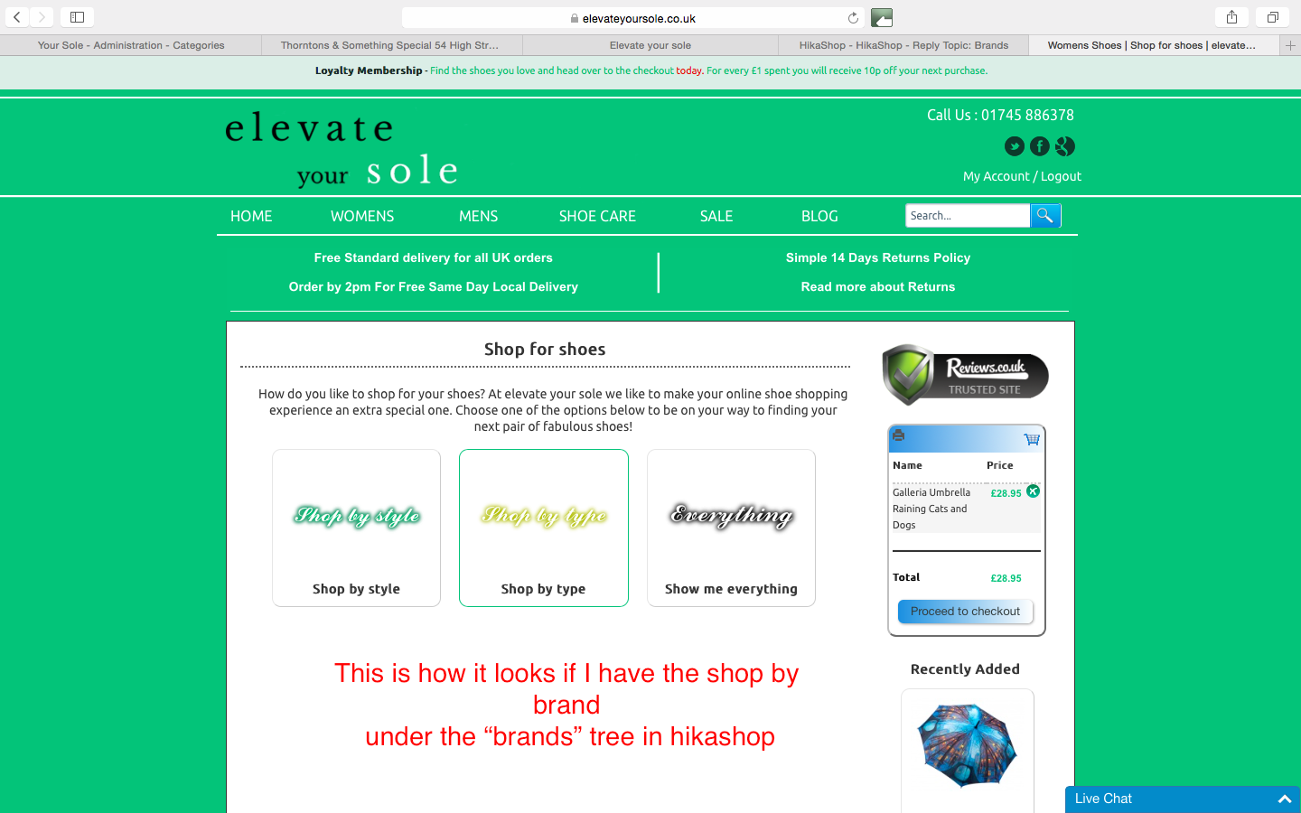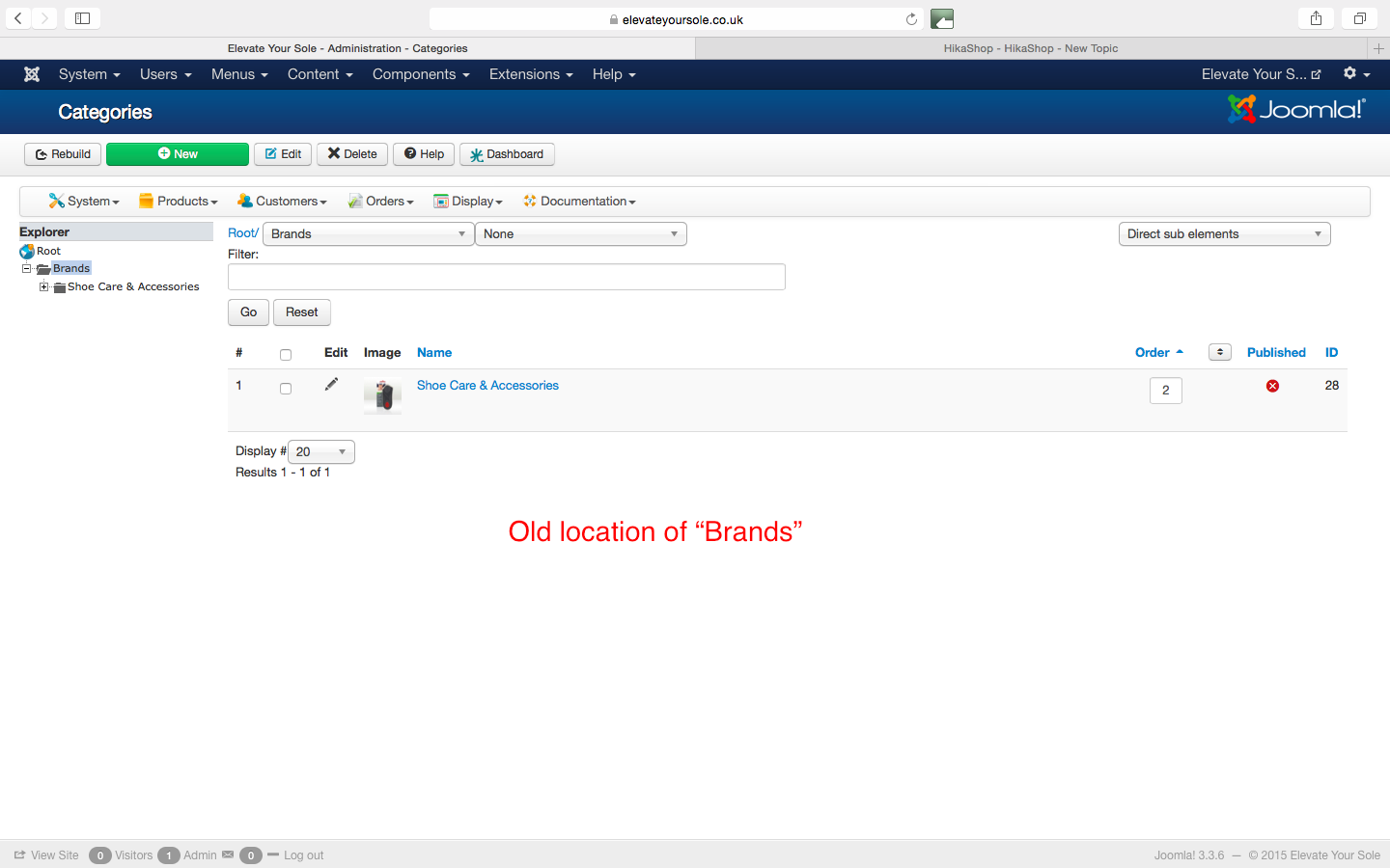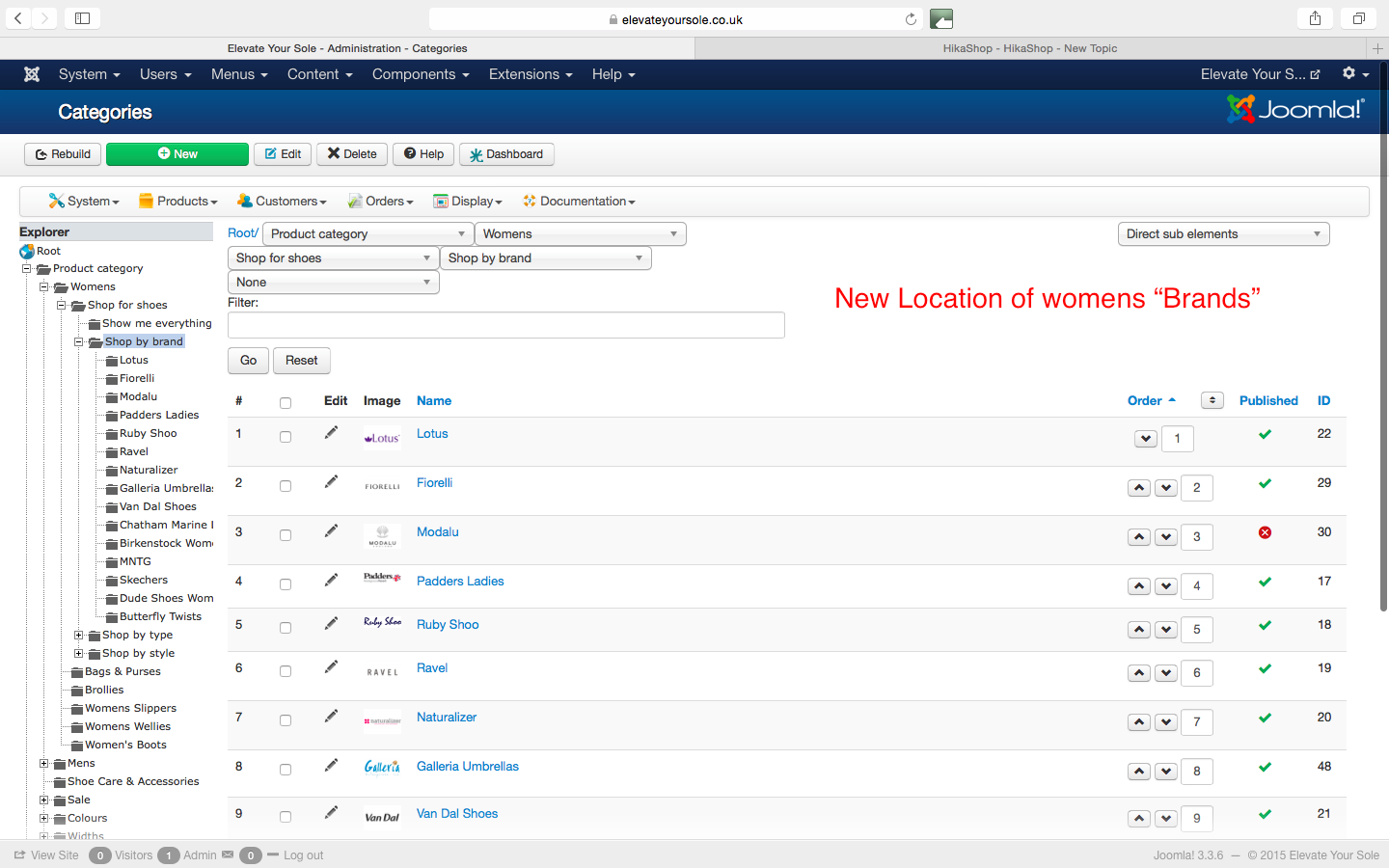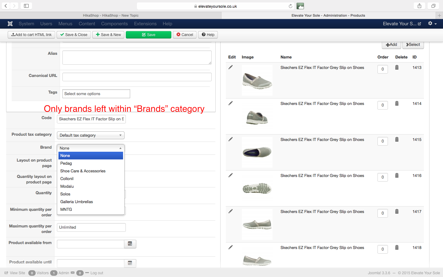They are two different entities and like Joomla article listings are not meant to display HikaShop products, categories listings are not meant to display brands. So there is nothing to "fix" here. The issue is conceptual, not code or settings.
